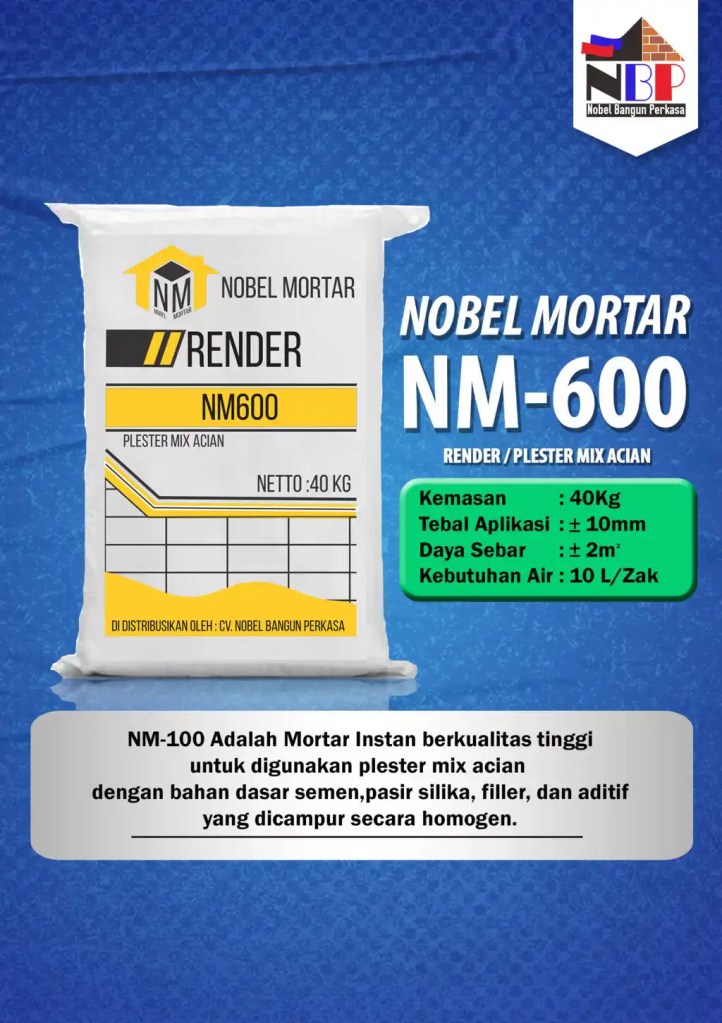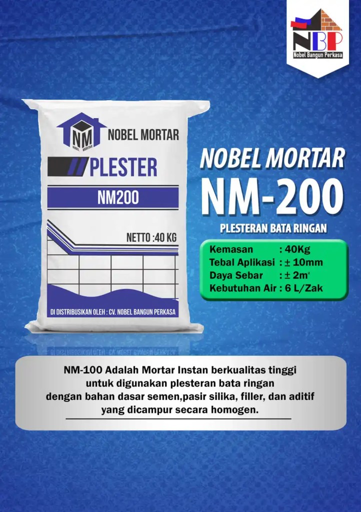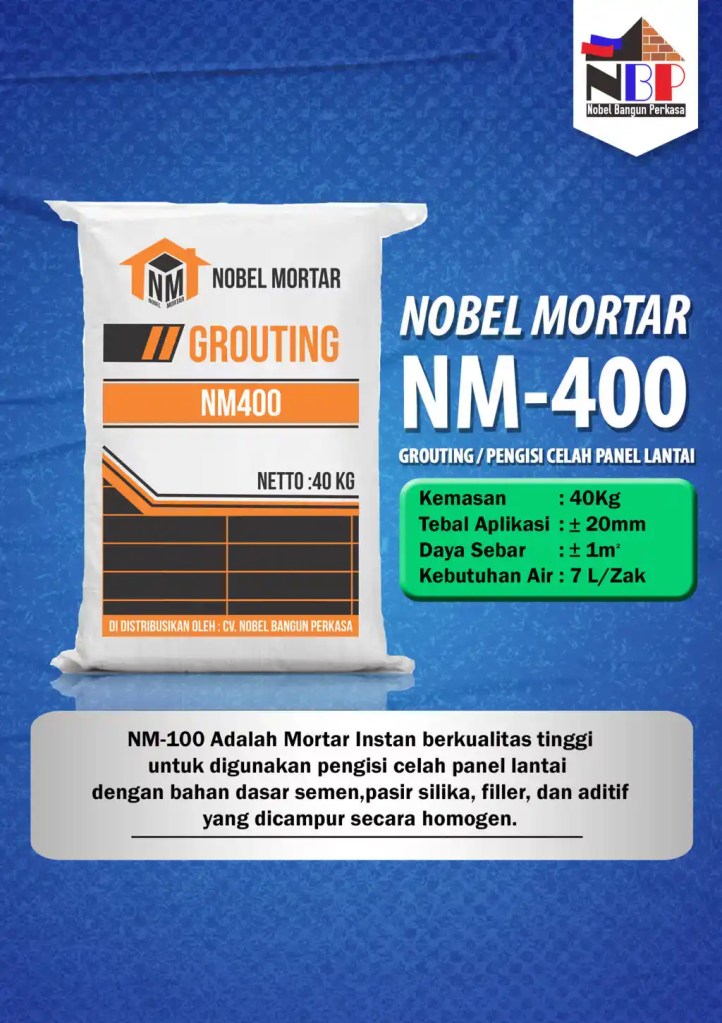 Nobel Mortar merupakan merk semen mortar yang didistribusikan oleh PT. Nobel Bangun Perkasa.